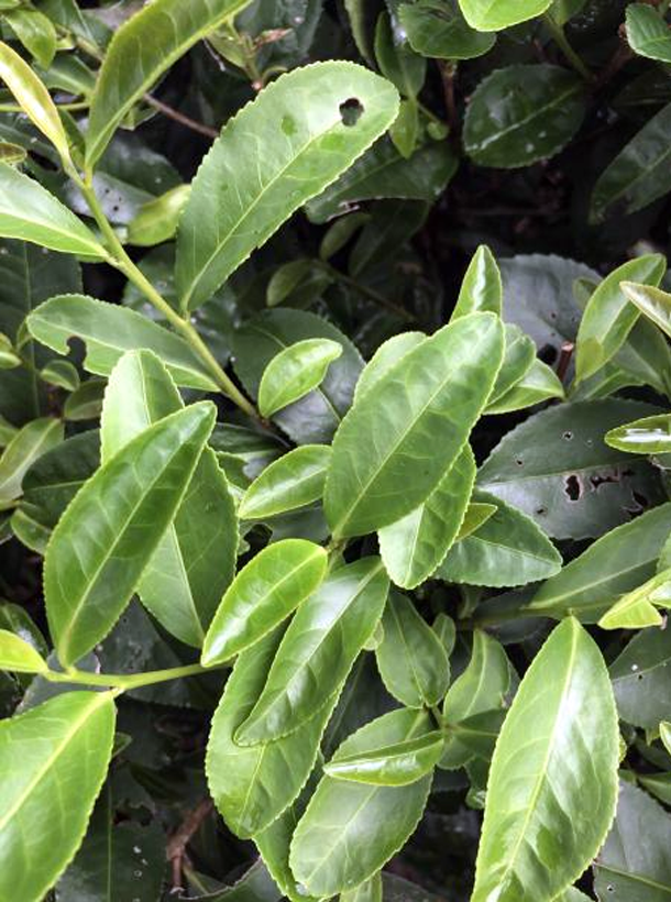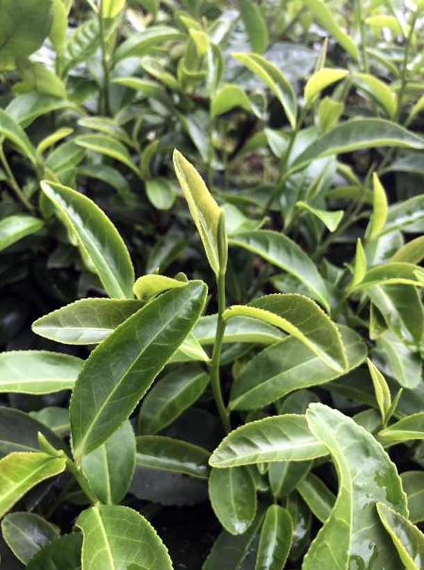 灌木型、小叶类、早生种。植株树姿半开张,分枝密,叶姿上斜。叶片呈长椭圆形,叶尖较钝,叶面微隆起,叶色黄绿,富光泽,叶肉较薄,叶质柔软,侧脉明显,锯齿较粗、整齐,叶缘微波,芽叶纤细,色黄绿,嫩叶内折。